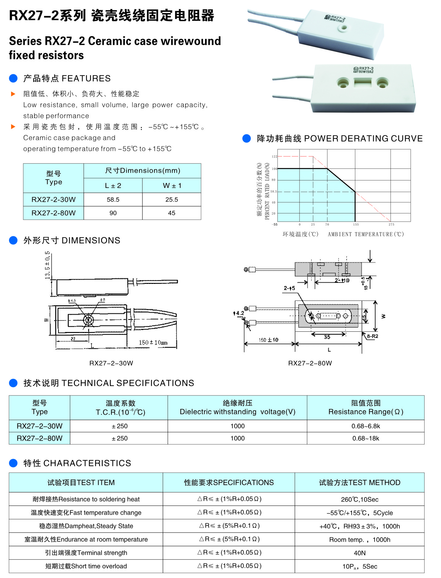 RX27-2系列 瓷殼線繞固定電阻器